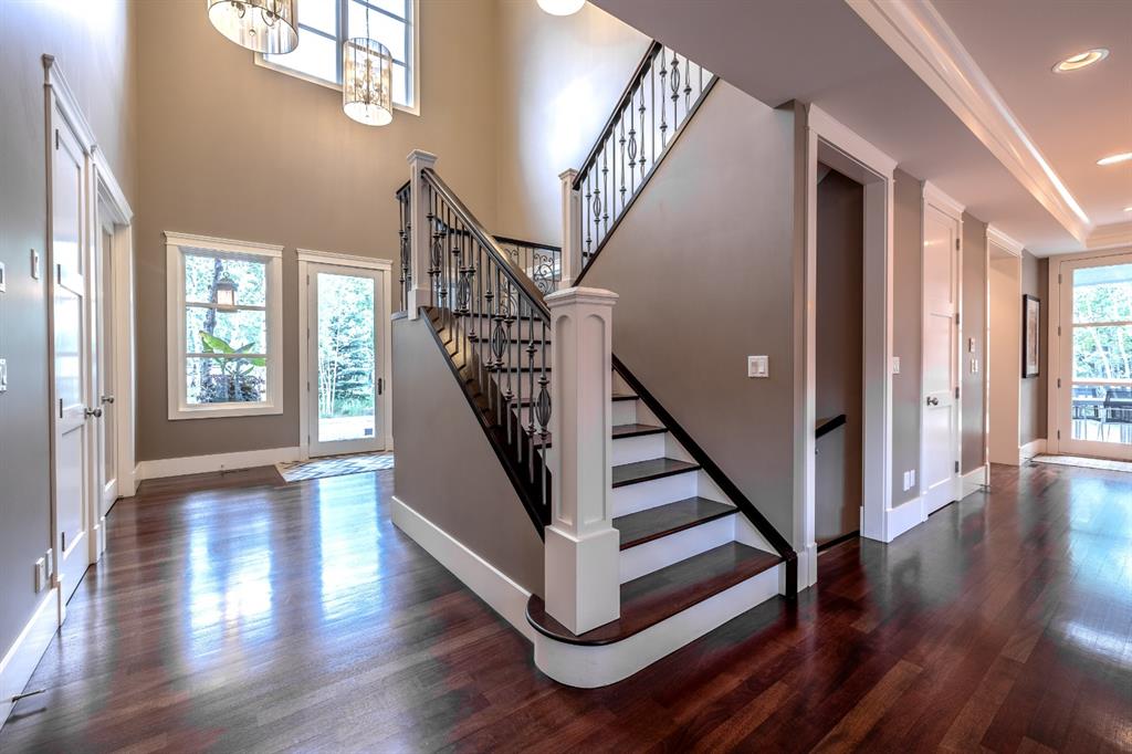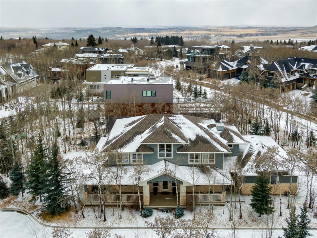 Welcome to the exceptional community of Posthill Estates, located in West Calgary/Springbank Hill. This gorgeous custom-built home is situated on a 1/4 acre treed lot in a private cul de sac. Featuring over 5000 sq ft of developed exceptional living space. Complete with 4 + 2 bedrooms, 3 full baths and 2 half baths. You’ll appreciate the impressive quality of craftsmanship and attention to detail throughout this home. The 2 storey foyer features hardwood floors, multiple chandeliers and a beautifully finished staircase. As you make your way through the main level, your lovely dining area connects to the butler bar and dreamy kitchen. Designer kitchen features a large travertine island with plenty of seating, built in wall ovens, gas range, and ample cabinetry, along with access to your large covered deck (perfect for entertaining and relaxing). Breakfast nook is near the double sided gas fireplace, which also connects to the main floor living room, featuring built ins and floor to ceiling windows. A well designed home office, mudroom with built in storage, main floor laundry with lots of storage and garage access along with a convenient half bath complete the main floor. Built in speakers conveniently located throughout the house. Beautiful hardwood flooring that continues onto the stairs, complimenting the open railings, overlooking your foyer. Upstairs, the primary bedroom/retreat is breathtaking with large windows and a gorgeous custom walk through closet. The spa inspired ensuite features a large shower, soaker tub, two sinks, a built in vanity and heated Travertine tile floor. There are two additional good sized bedrooms with walk in closets and a 4th bedroom upstairs, also a five-piece bath, all completing the upper level. Your lower-level is great for entertaining and features in floor heating. The beautifully finished bar overlooking your home theatre/recreation room, double sided fireplace, 2 pc bath, a gym (fifth bedroom), Jack and Jill 4 pc bathroom, and the 6th bedroom. Outside will find a naturally landscaped yard and a partially covered wrap around deck. This modern family home is just 3 minutes to Aspen Landing and close to; all amenities, Webber Academy, Rundle College, Calgary Academy and west Calgary’s public schools. Excellent access to nearby pathways an easy 45 minutes to the mountains and just 20 minutes to downtown. Posthill Monthly Fee covers: common area landscaping, road maintenance and road snow removal, reserve fund contributions, streetlights and bare land condo management. Bonus is the brand new washer and dryer Nov 2021, new carpets upstairs in March 2022, main floor furnace replaced in 2020 and updated paint in most areas. Book your viewing soon as properties like this one in this location do not come on the market very often!